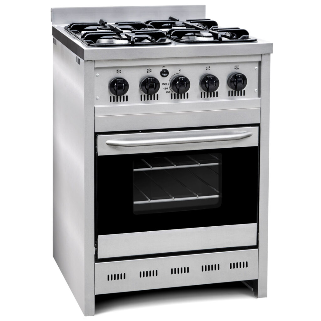 Horno: Piso en tejuelas refractarias, puerta con resorte industrial y burlete siliconado, válvula de seguridad, quemador longitudinal de acero inoxidable, pirómetro indicador de la temperatura y aislación del exterior mediante vrac, accesorios: 2 rejillas