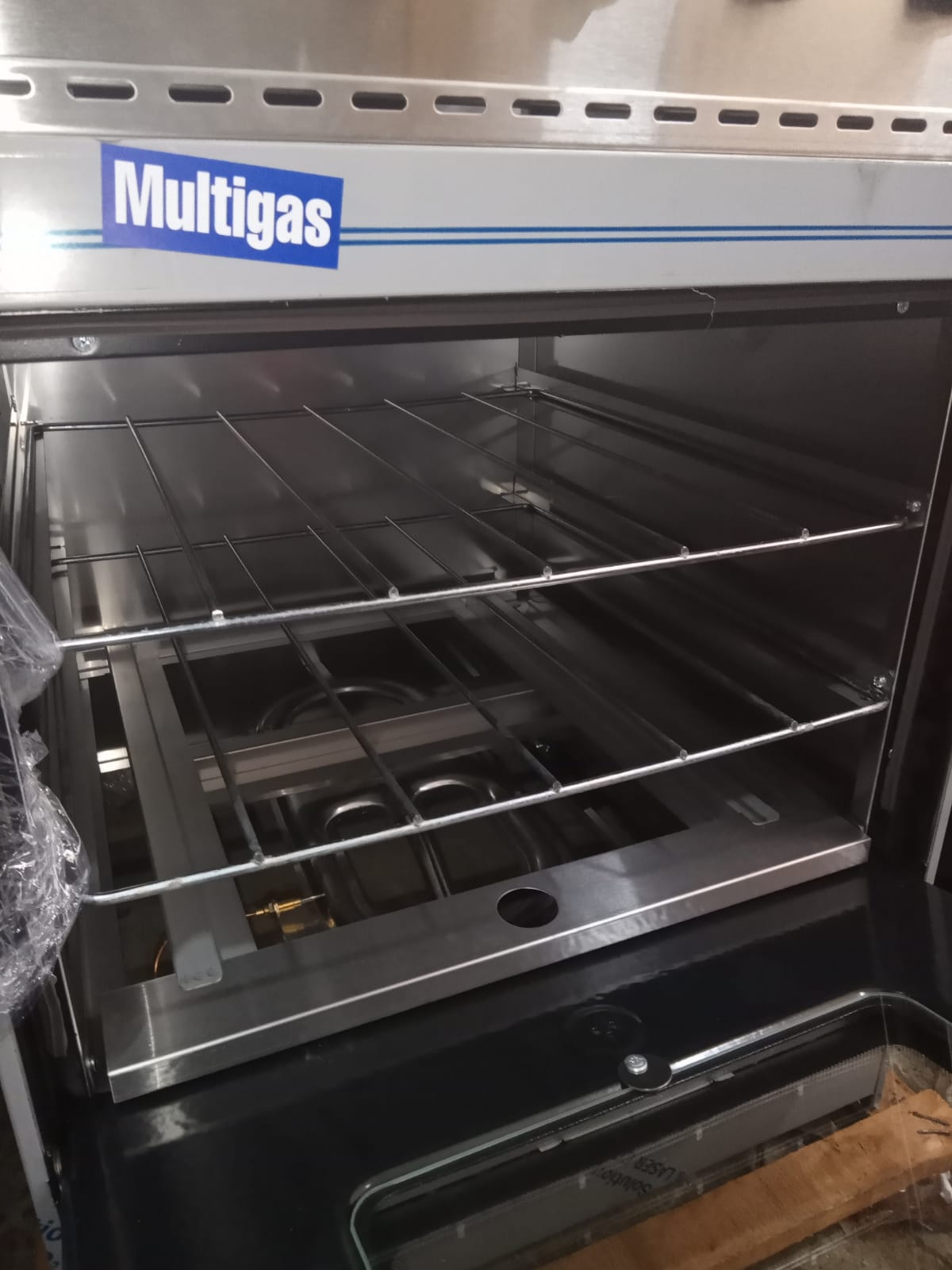 Horno: Piso en tejuelas refractarias, puerta con resorte industrial y burlete siliconado, válvula de seguridad, quemador longitudinal de acero inoxidable, pirómetro indicador de la temperatura y aislación del exterior mediante vrac, accesorios: 2 rejillas